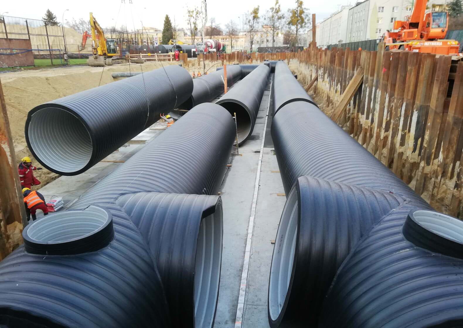 Work on the second stage of the project, located on the MOSiR grounds near the Polski Hotel, began in February 2020. The contractor for this stage of the project was Santex Sędziszów. Between March and July, Uponor Infra delivered 223.4 m of DN3000 SN8 angle tank elements together with DN3000 bends and tees to the site. Some of the welding was carried out by the contractor, who had been trained in this area by Uponor Infra. The work was completed in late 2020.