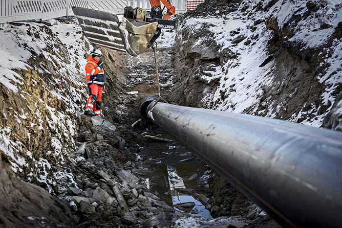 The old plastic pipe will now be renovated by relining. A 500-millimetre, 10-bar pipe will be installed inside the 630-millimetre, 6-bar pipe. – Therefore, the old pipe will remain as a protective shell for the old pipe. Capacity will slightly decrease due to the smaller pipe size. However, we have calculated that the system will take it well, says Piirainen. Uponor Infra will be responsible for the site's comprehensive contracting. Fitter Mikko Kallioinen from Uponor Infra says that the pipe will be relined 300 metres at a time. – Excavations will be made at both ends of the line, and the new pipe will be winched inside the old one by a lorry. The winch has a pulling force of 15 tonnes. Kallioinen fully agrees with Piirainen on what caused the problems. – There are hundreds of rocks in the ground.