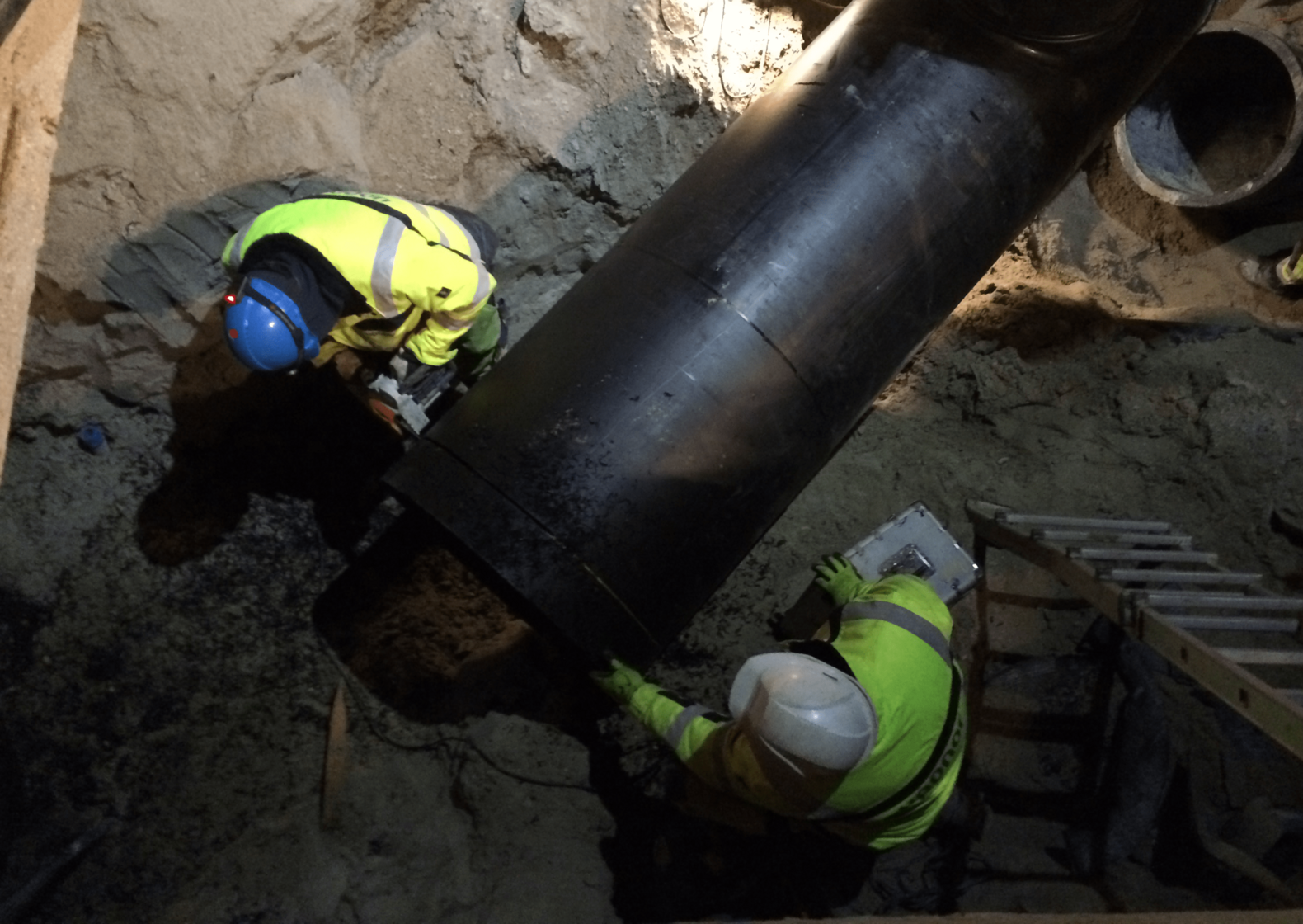 Butt welding by night of 900 mm pipes ensures stable operation of a district cooling solution in Copenhagen Harbour.