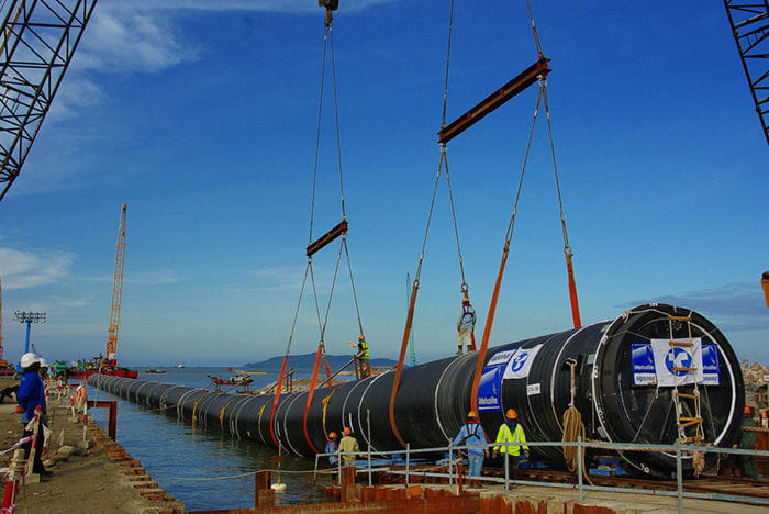 Weholite pipes in Philippines as cooling water intake and outfall pipelines.