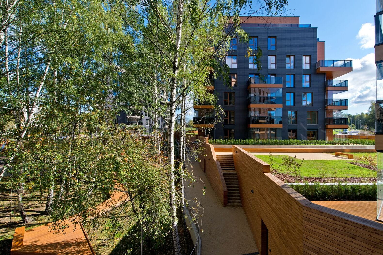 "Beržų Terasos" (Birch Terraces) - nature surrounded 10,600 m2 sized multi storey apartment buildings in Vilnius Antakalnis district.
