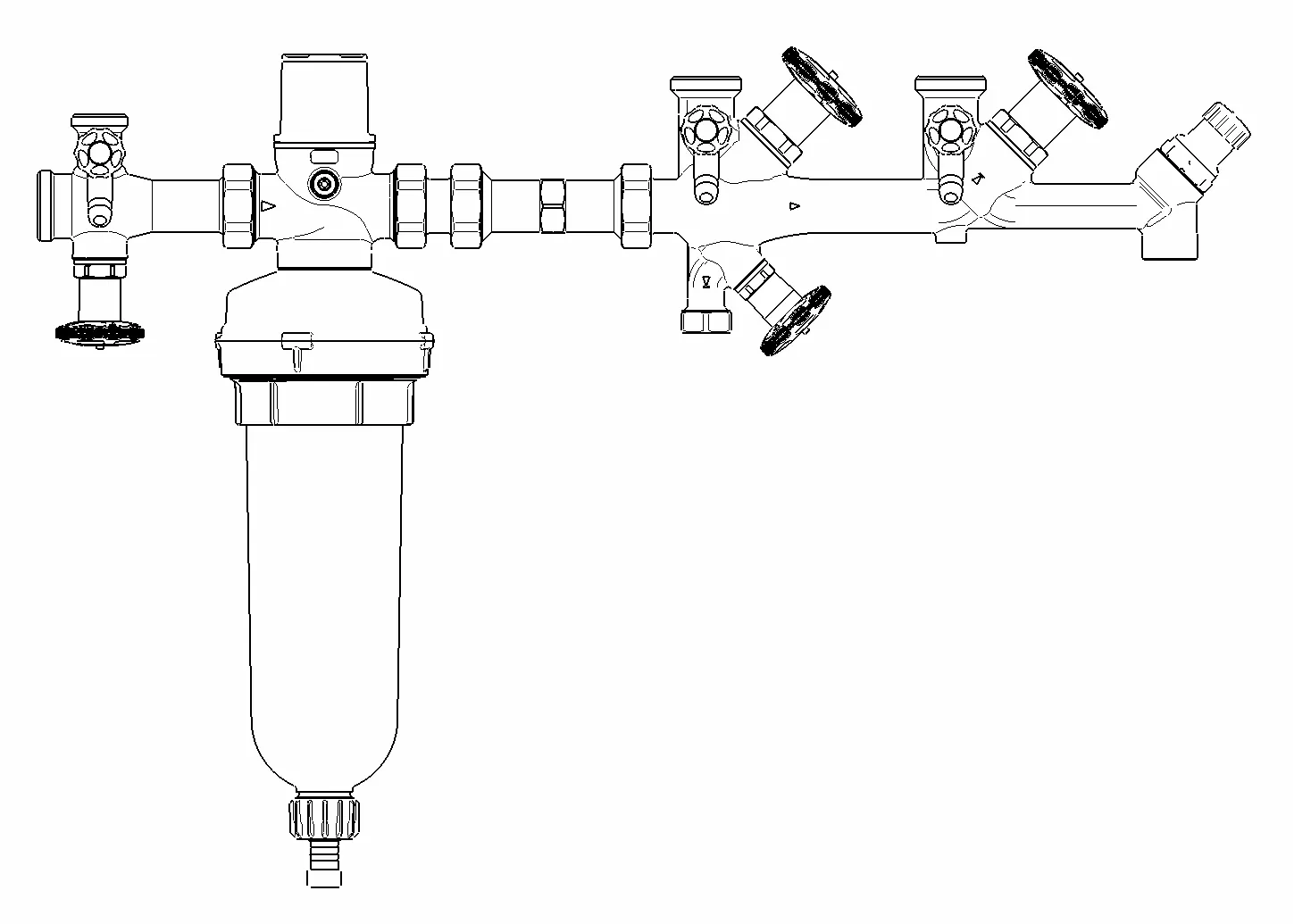 - Descrizione: composto da valvola di distribuzione JRGUSIT NG 5151, JRGURED Combi 1353, collettore JRGUSIT Combi 5191, pezzo di collegamento 1135- Temperatura: max. 30 °C- Pressione nominale: PN16- Materiale: bronzo, acciaio inox, EPDM, plastica- Impostazione di fabbrica: PRV 400 kPa (4 bar) campo di regolazione 200–600 kPa (2–6 bar), valvola di sicurezza 600 kPa (6 bar)- Connessione: filettatura maschio