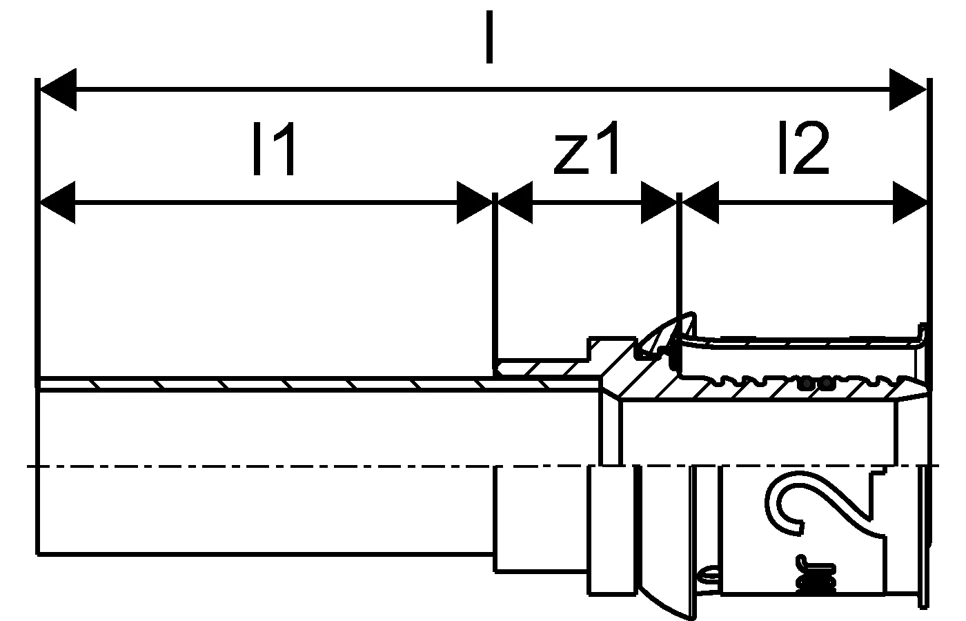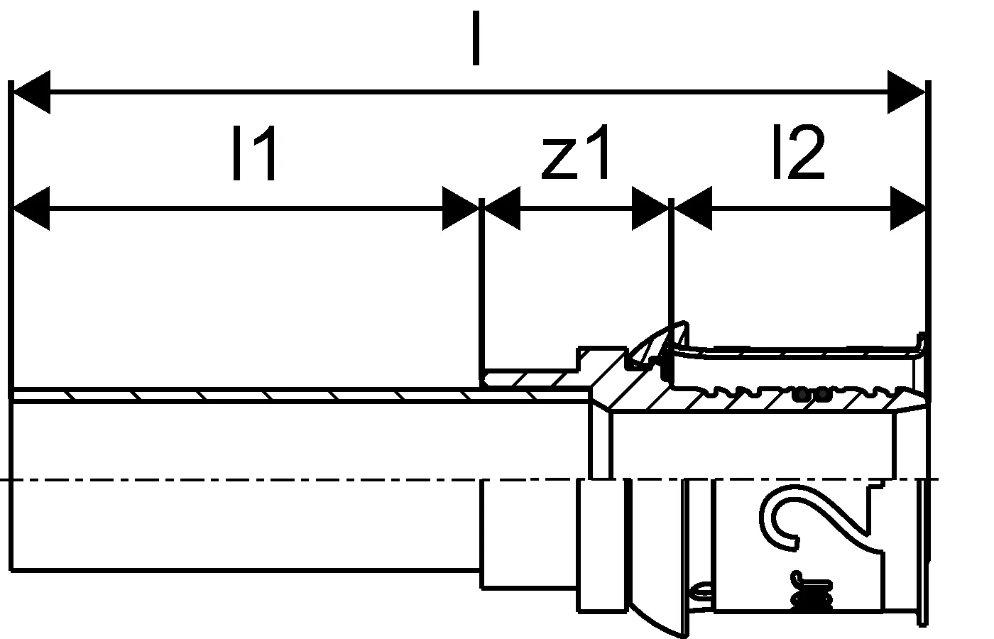 - Fixierte Presshülse aus Edelstahl mit Sichtfenster