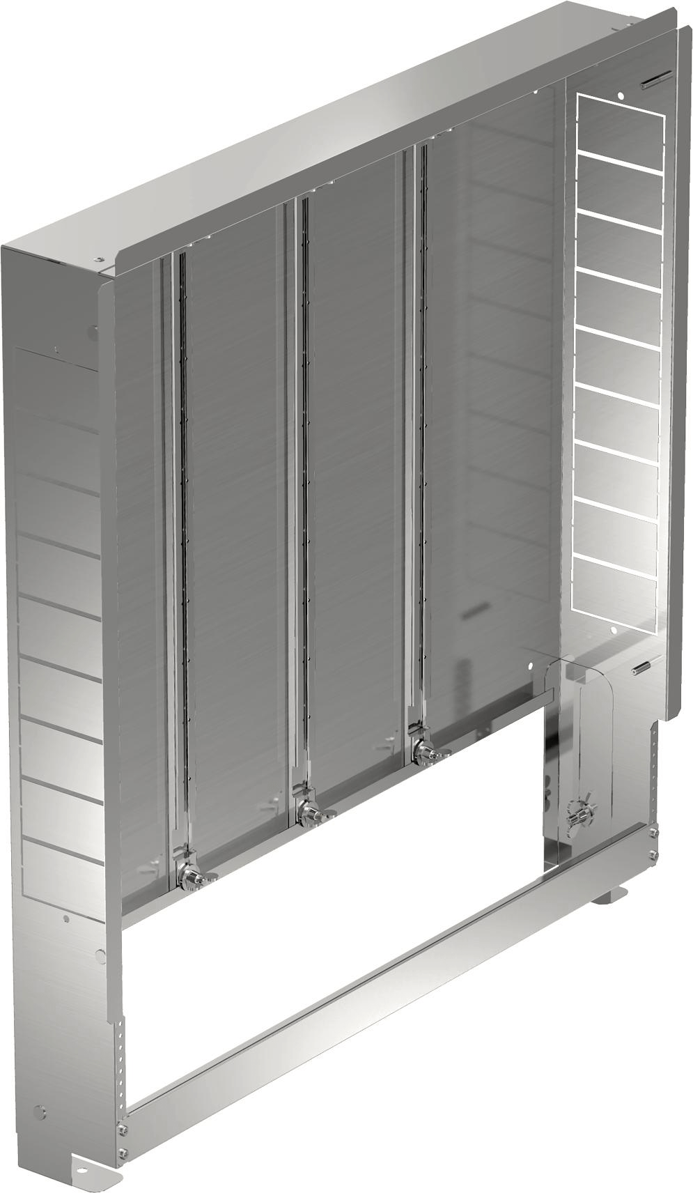 - corpo per cassetta da incasso a parete senza porta e cornice- compatibile con tutte le cornici/porte IW- profondità 110mm, estensibile fino a 150mm con cornice/porta - altezza regolabile: 730 - 930mm- altezza del pavimento: max. 200mm- materiale: acciaio zincato