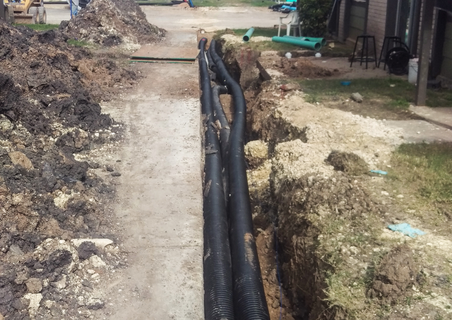 “This project is one of the most challenging and difficult underground jobs we have ever done,” Fowler said. “It was a priority to keep residents living in their apartments during the installation, so we had to keep the existing plumbing systems functioning while installing the new systems.” To further complicate the installation, Austin saw an unprecedented amount of rain during the three months of the initial installation, making the installation more challenging. With the saturated and soaked grounds, the piping had to be put in immediately after a trench was excavated, and then quickly backfilled before the trench would collapse.