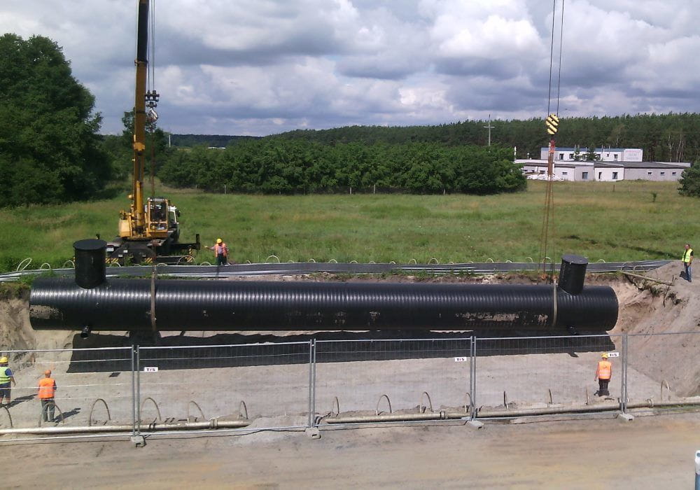The modernisation of the existing drainage network involved the liquidation of most of the evaporation reservoirs and retention-infiltration reservoirs and parts of the existing storm water drains discharging wastewater to the liquidated reservoirs. In addition, four separate batteries of detention tanks were designed. Uponor Infra was responsible for the production, delivery and connection of these tanks. As part of the second task, Uponor Infra provided a battery of six underground tanks of DN/ID1200 Weholite PE-HD structural pipes with ring stiffness of SN 8 kN/m2, with a length of 27.17 m each and a total capacity of 185 m3. As part of the third task, it provided three sets of tanks: