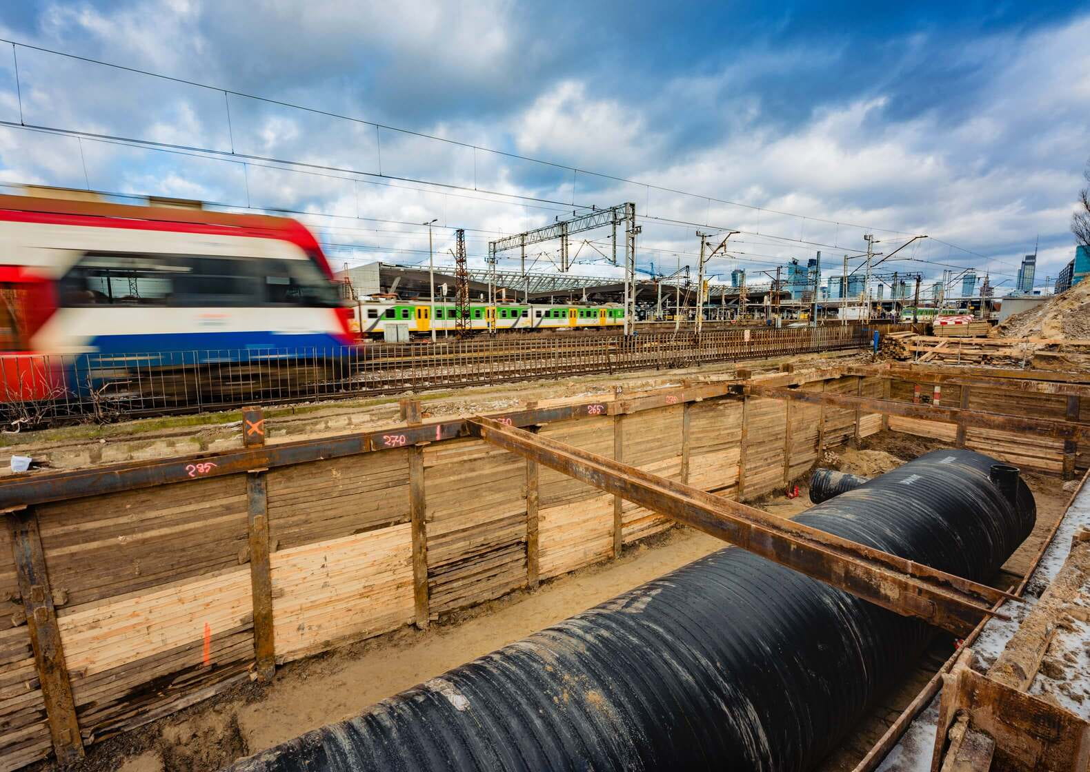 The modernisation of the Warsaw West railway station is the largest construction project currently underway in the Polish capital. Once completed, it will become Poland’s largest station, with 120,000 passengers expected to pass through daily by 2030. To ensure uninterrupted rail traffic at all times, it is necessary to ensure adequate drainage of the railway line and other track assets. Five batteries of PE-HD retention tanks meet the strictest criteria of durability under heavy loads from rail traffic.