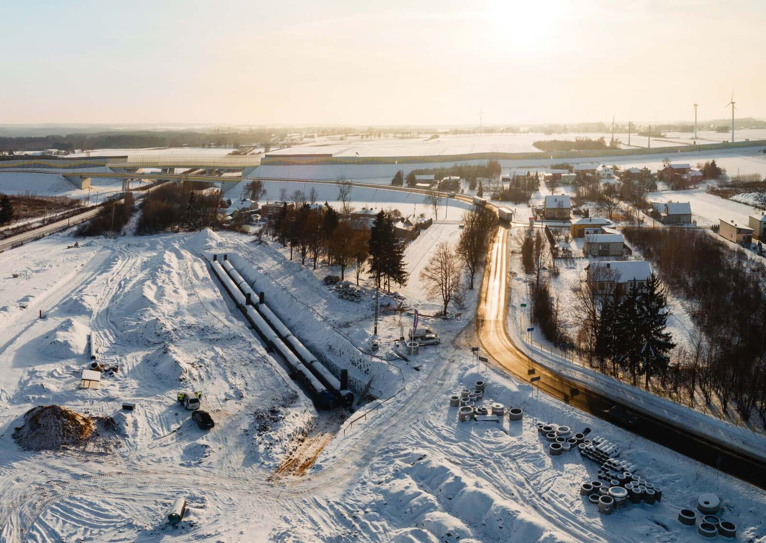 The main plate of the transhipment port will have dimensions of 40 m x 800 m. It will also include a railway siding with a length of 2 km and a road and parking system for trucks. Transshipments will be carried out all year round, regardless of the weather, so in order to ensure the safety and continuity of the terminal operation, it is crucial to properly design and build a system to drain stormwater from paved surfaces or roofs of associated facilities.
