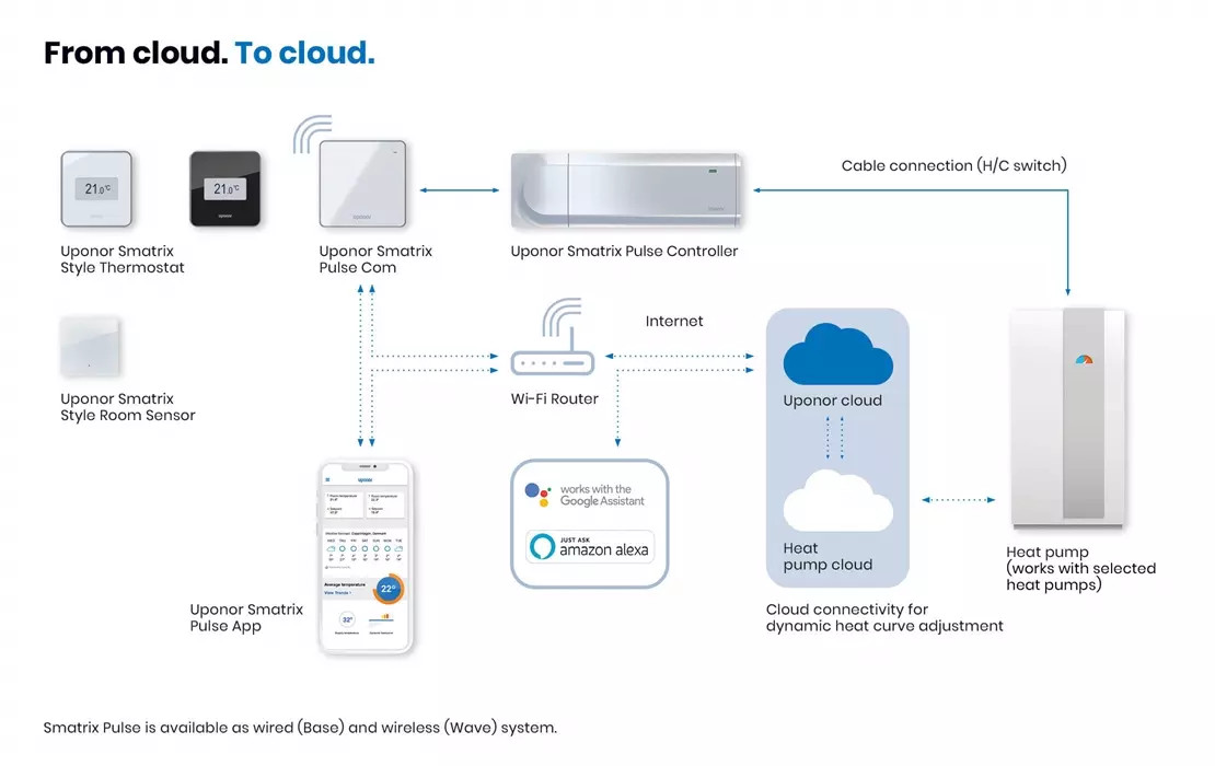 Uponor Smatrix Pulse sistemi, Uponor Smatrix Pulse Uygulaması ve Uponor bulutu arasındaki bağlantıyı sağlar.