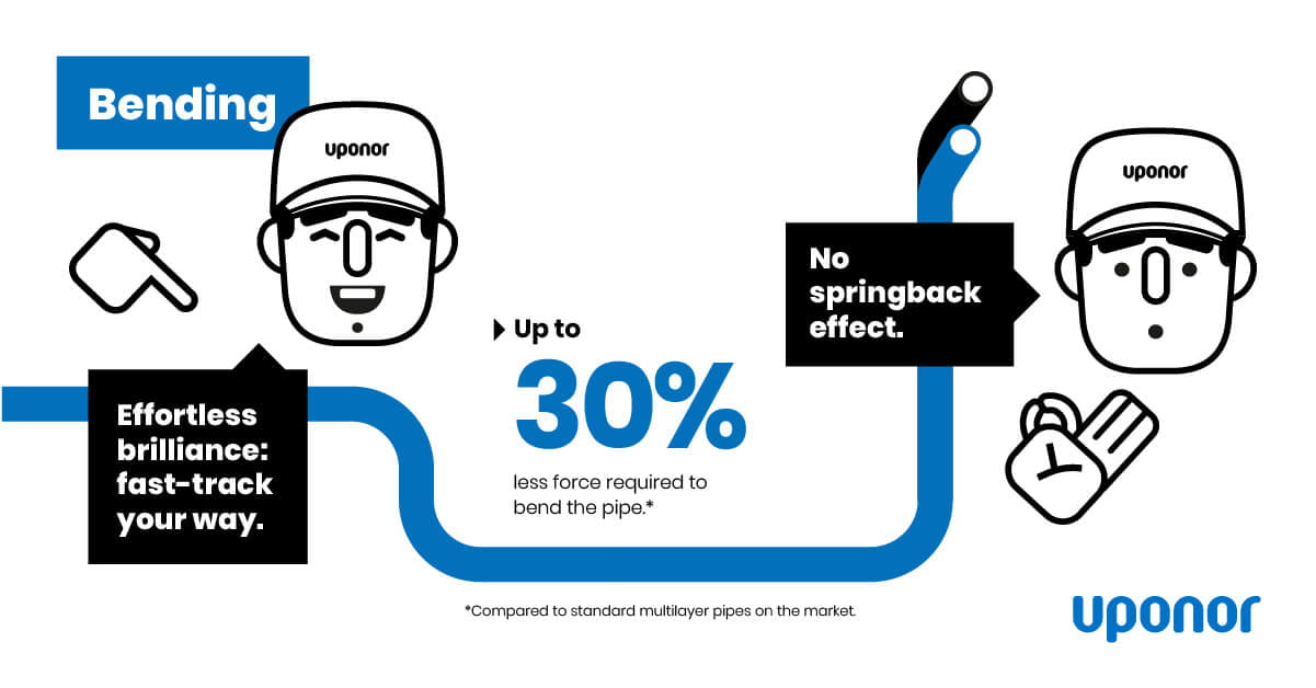 - Easy bendability of the pipe - up to 30% less force required to bend the pipe*