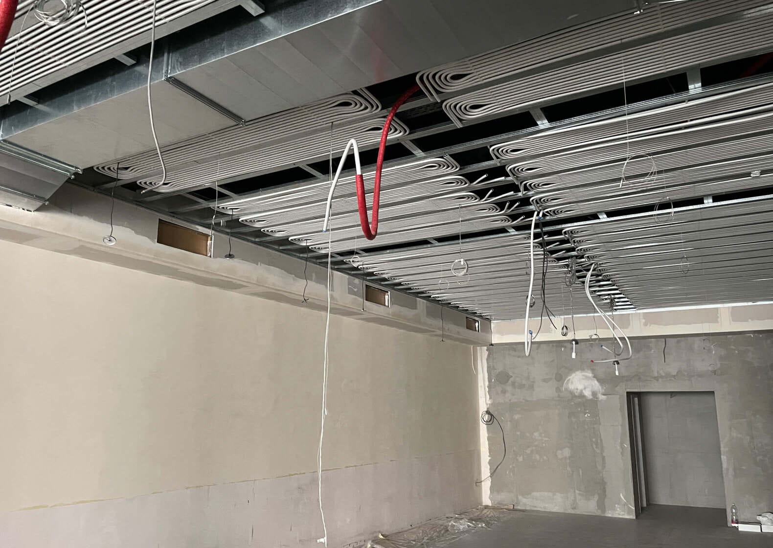 Uponor Thermatop M is a revolutionary radiant ceiling heating and cooling system that makes architectural design stand out because the ceilings are smooth and seamless. This allows Thermatop M to create a ceiling that is not just a functional ceiling, but a work of art. Its flexibility can meet even the most demanding architectural requirements. The system is powerful, whether you need heating in winter or cooling in summer. And best of all, built-in elements can be easily integrated into the ceiling! This means you don't need radiators that take away from the space or air conditioning units that spoil the look of the room.