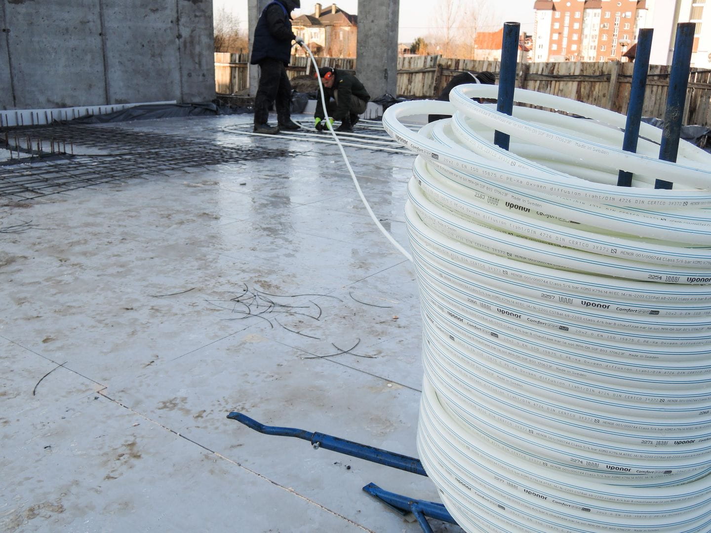Shopping and office center in Khodosivka is a building located in a convenient location near Kyiv at the intersection of roads leading to the city, in a picturesque sights of the suburbs. Next to the building there is a huge shopping and entertainment center and premium cottage towns. Construction of a shopping and office center in the Khodosivka is made using the Uponor TABS - in Ukraine the implementation of innovative heating and energy saving Uponor systems begins with this facility. The building has five floors. Each floor is equipped with TAB system layer. As an additional source of heating, there are also decorative radiators which are connected to the system according to the Tichelman method with pipes of Ø25, and Ø20 for window slopes.